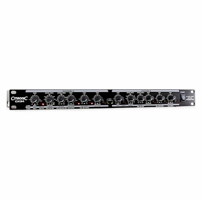 Le CX34 de chez Citronic, à l’instar de son petitfrère, est un effet crossover qui répartit les fréquencesjusqu’à 3 canaux stéréo et 4 mono. Vous pourrez donc répartirde manière optimale les fréquences à vos subwoofers, woofer outweeter.